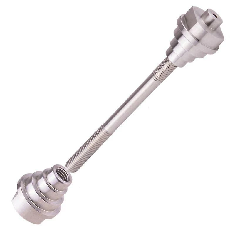 The tool is a stepped adapter designed to work with each shaft mount currently on the market: 12×100, 15×100, 20×110, 15×110.