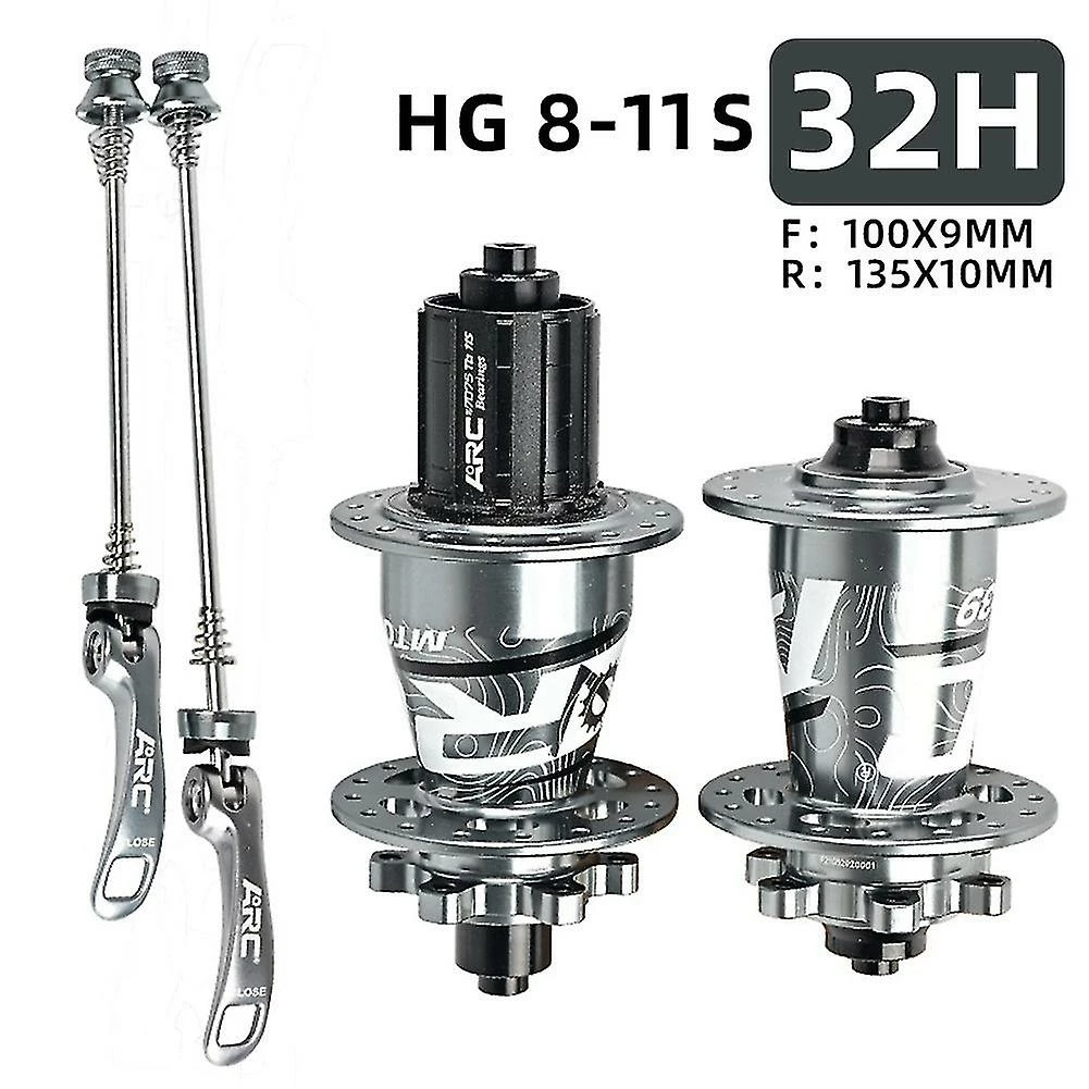 Freehub body: HG 8-11 speedSpoke: 14G*32HO.L.D: Front 9 x 100mm Rear 10 x 135mmBearing: Front 2 / Rear 4Pawls: 6 Pawls 3 Teeth 114 ClickColour: Titanium ColorMaterial: Aluminum AlloyPackage Contents:1 x Front hub1 x Rear hub2 x Quick release leverOnly the above package content, other products are not included.Note: Light shooting and different displays may cause the color of the item in the picture a little different from the real thing. The measurement allowed error is +/- 1-3cm.